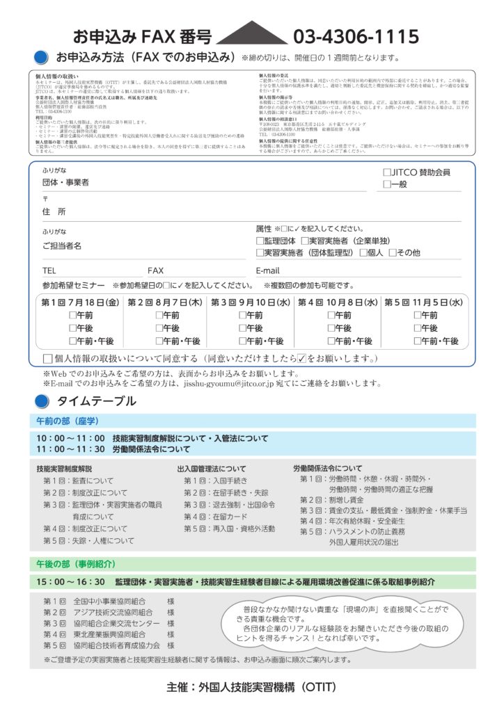 『外国人技能実習生の雇用環境改善促進のためのセミナー』の開催について(外国人技能実習機構(OTIT))<締め切りました>