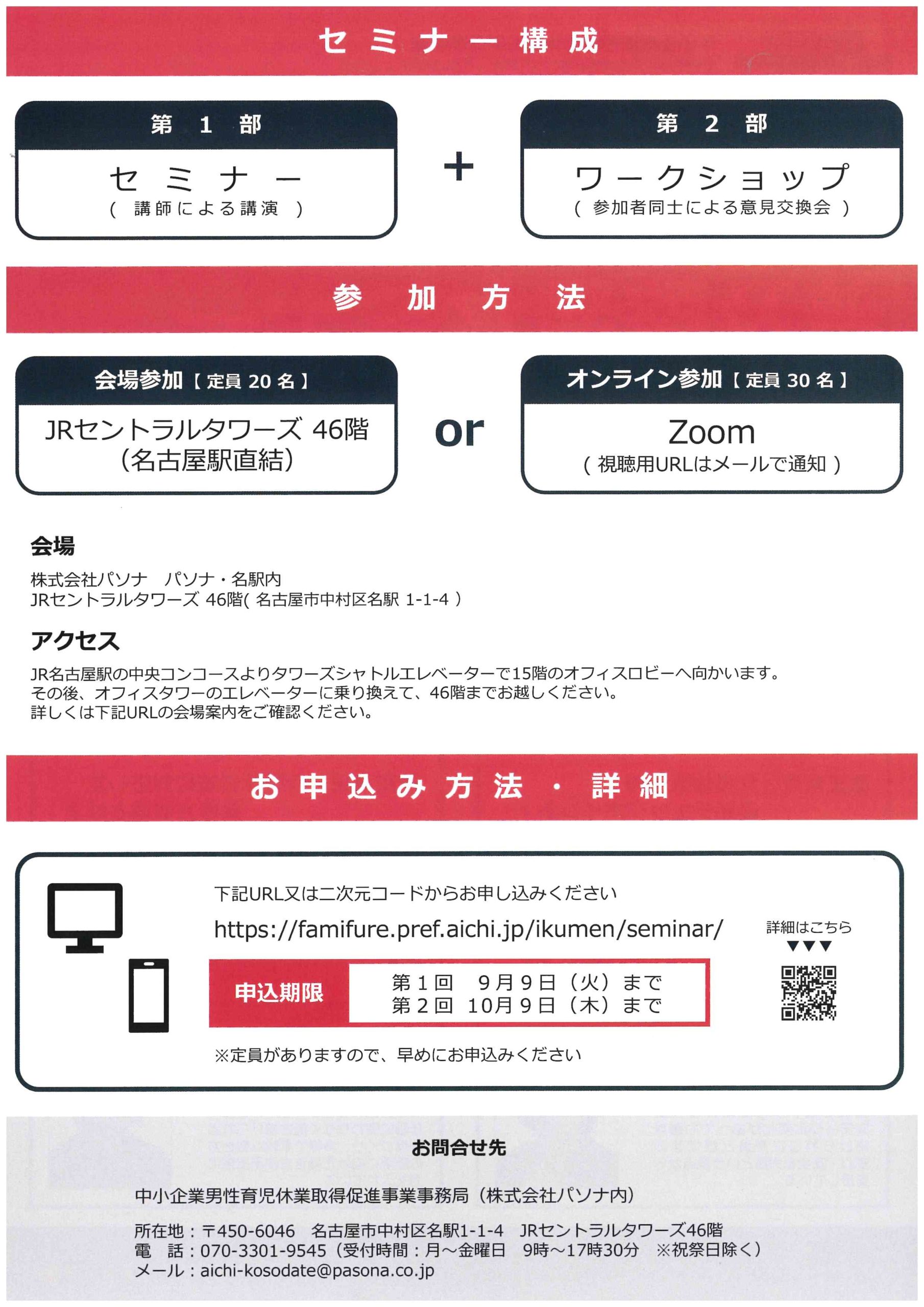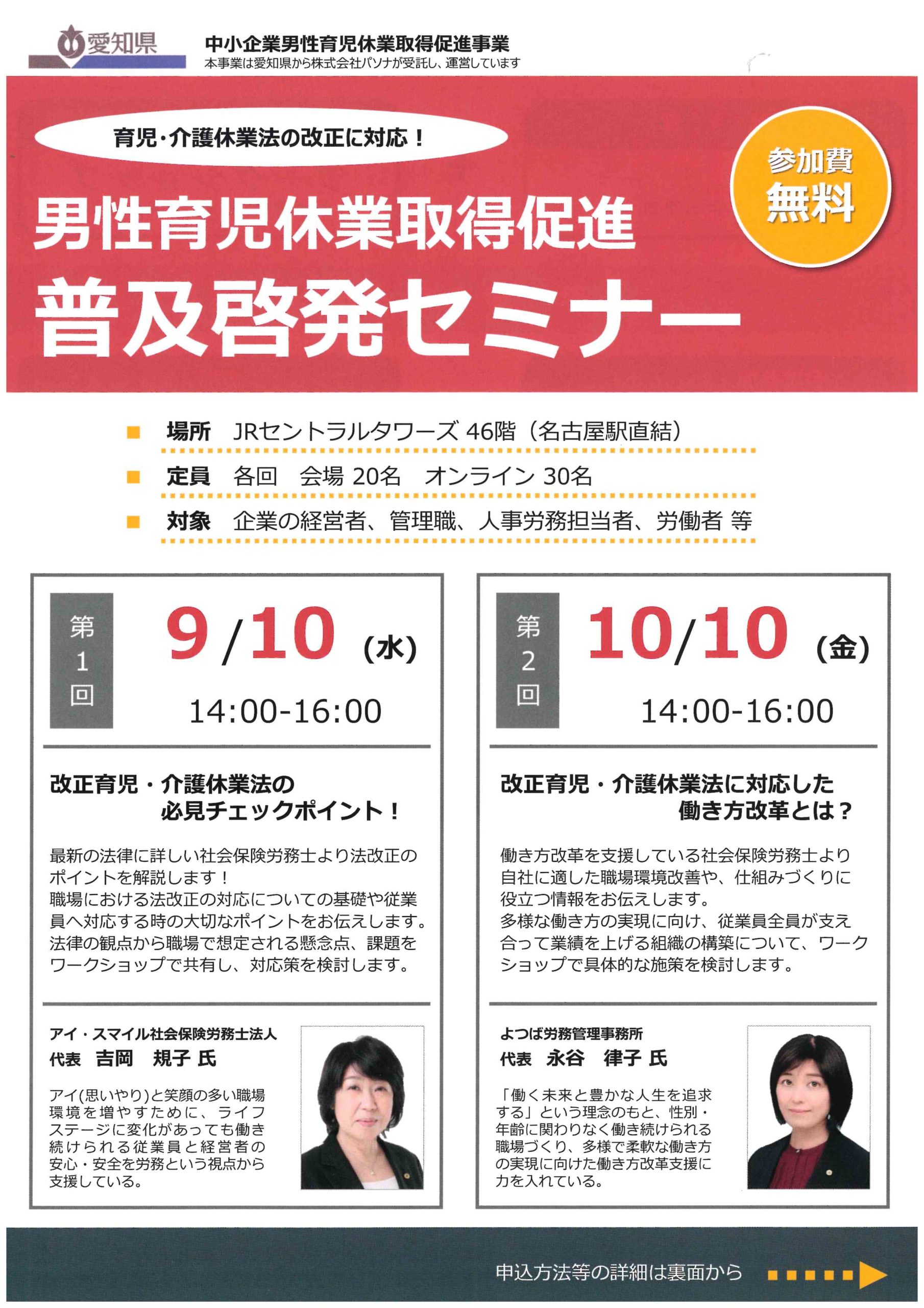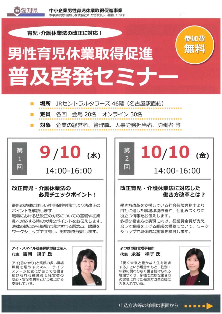 『男性育児休業取得促進普及啓発セミナー』の開催について(愛知県)<締め切りました>