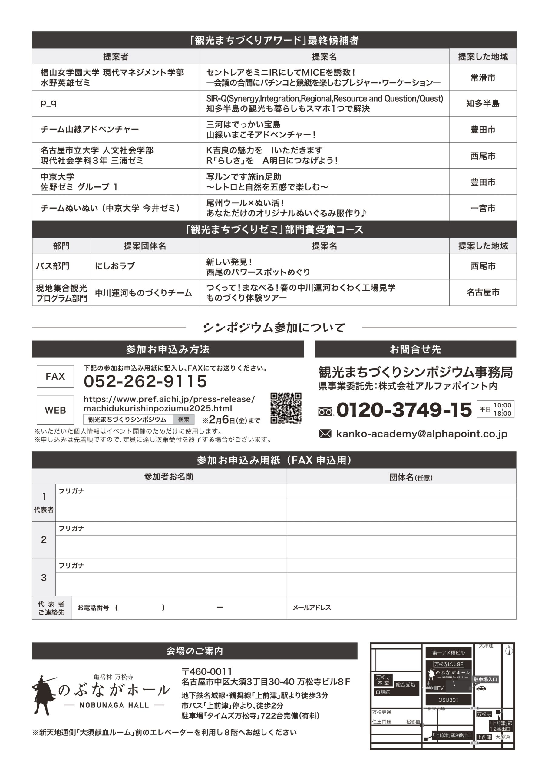 『観光まちづくりシンポジウム』の参加者募集について(愛知県)