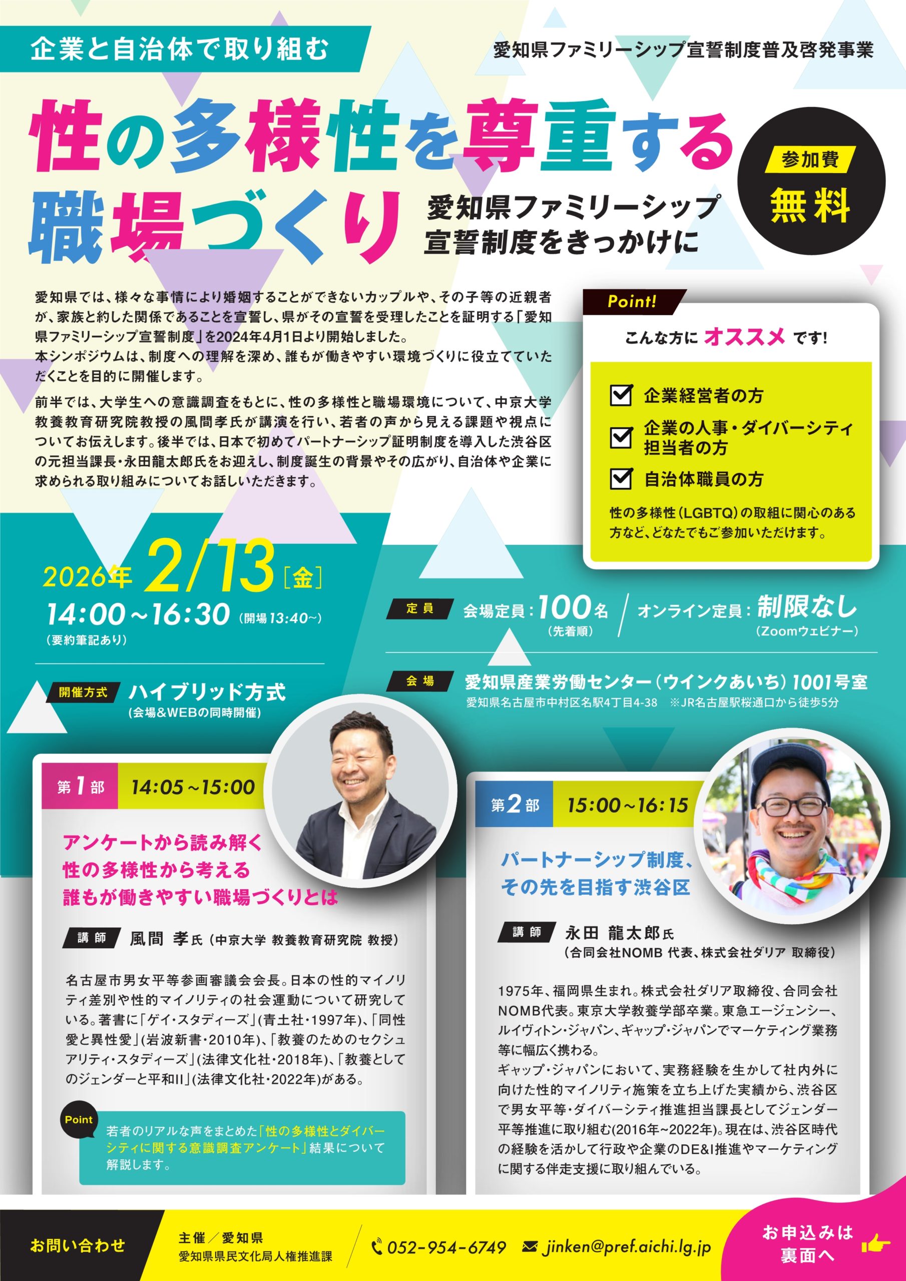 『愛知県ファミリーシップ宣誓制度普及啓発シンポジウム』の開催について(愛知県)