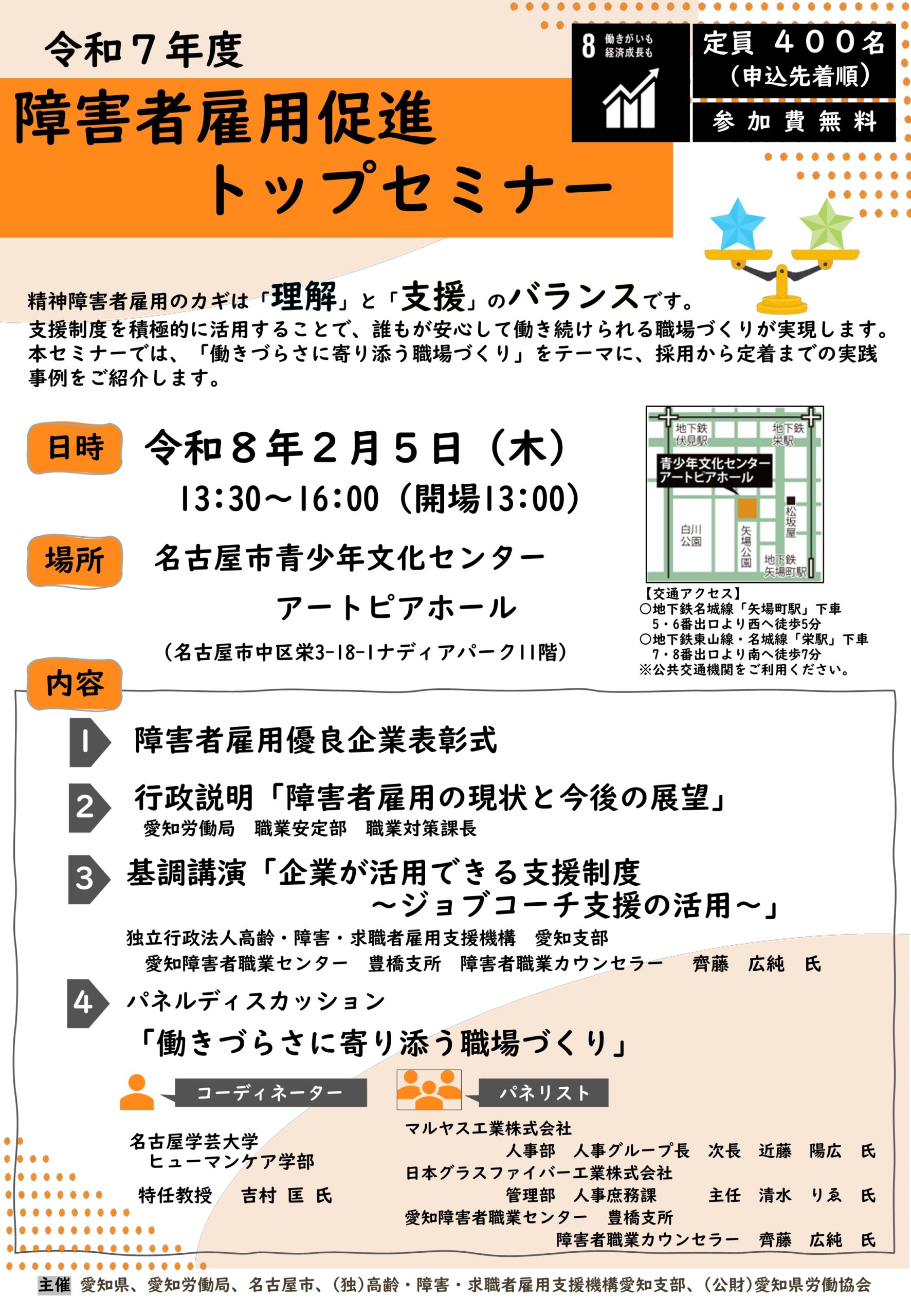 『障害者雇用促進トップセミナー』の開催について(愛知県)